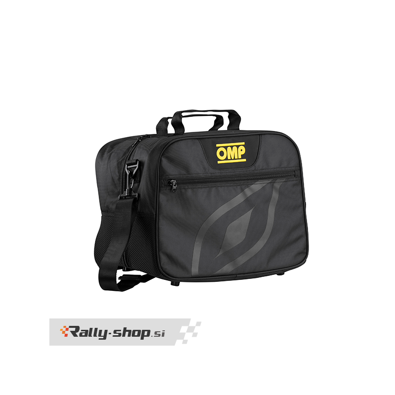 OMP Helmet Bag Helmet bage featured by protective lining, zipped side pockets and special integrated strap to attached to a trolley bag handle for easy transport. Color: Black Dimensions: 38 x 29 x 27 cm