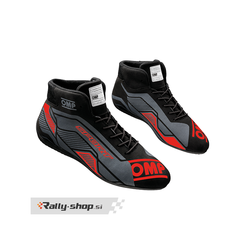 OMP SPORT Shoes Entry level race boots made in soft, comfortable and lightweight microfiber. Exclusive resistant antslip rubber sole inspired by car's tyres (high grip in every condition and long-time resistance). Shaped ankle with rear bellow to increase comfort and ease the movement. The silkscreen printing technology gives the boots an innovative design. NEW COLORS BLACK/FLUO YELLOW, BLACK/CYAN Colors: Black/white (076), Black/red (073), Black/fluo yellow (178) - new, Black/cyan (275) - new Sizes: 36-47 Homologation: FIA 8856-2018