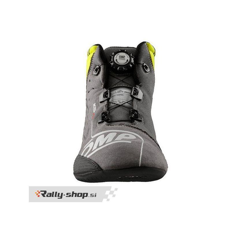 OMP KS-X R Shoes Top level kart boots with exclusive rotor lacing insipred on the ONE EVO X R racing boots, new generation sole which guarantees highest sensitivity and grip. Made of very lightweight perforated microfiber that guarantees the best breathability, with tecnical protection on the tip. Rear bellow to increase comfort. NEW FIA 8877-2022 HOMOLOGATION. Colors: Black (071), Anthracite/silver/yellow (370) Sizes: 32-47 Homologation: FIA 8877-2022